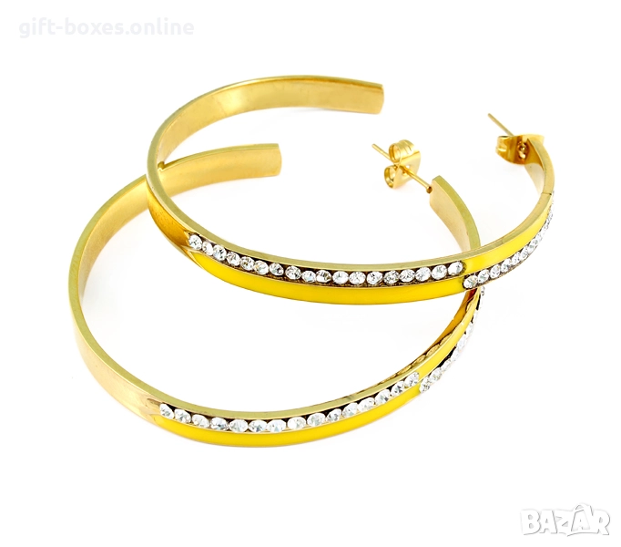 Стилни обеци изработени от полирана стомана,седефена слюда и кристали.