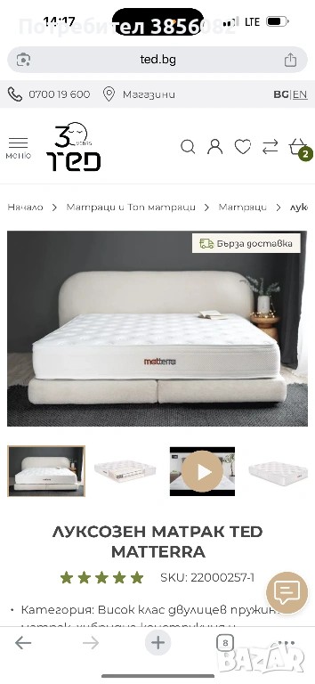➡️ Актуалната цена на нов такъв матрак е около 1200 лв., а моят се предлага на значително по-ниска цена.