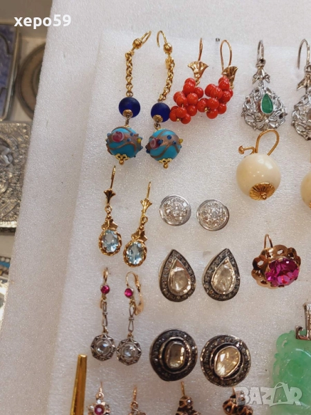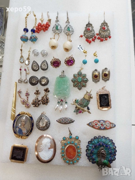 Здравейте!Пуснал съм лот от разнообразни артикули,обеци,брошки медальони.Има такива от злато има и от сребро с позлата,гарнирани със скъпоценни камъни,брилянти,рубини и други.Имам някои които са пуснати поотделно в другите ми профили.Ще ви помоля при сериозен интерес да ми се обадите по телефона за да мога да ви пусна на вайбър още снимки клипове ,и от каквато информация имате нужда.Благодаря Ви!
