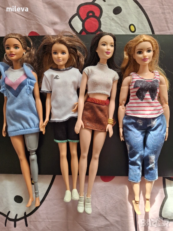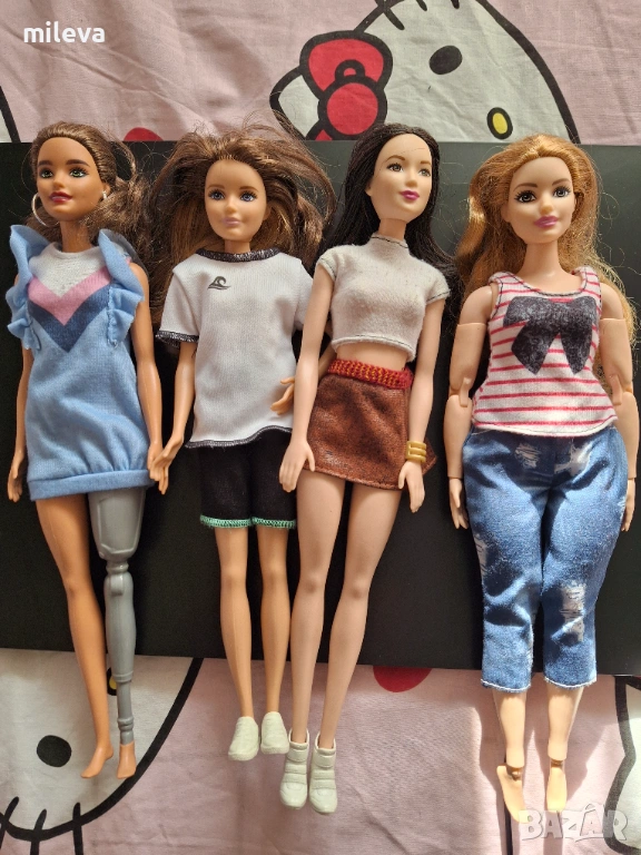 Едното барби е от специален модел с изцяло подвижно тяло вижда се на снимките тя е 35лв има лека забележка липсва пръстче на едната ръка на снимките се вижда