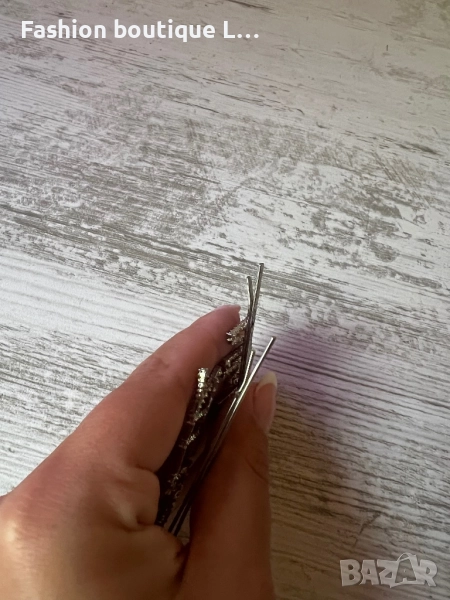Комплект от 2 броя сребърни фиби за косата с блестящи камъчета ❤️ → Обява 52333246
