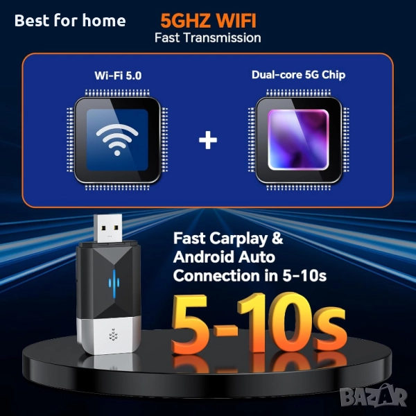【𝐅𝐚𝐬𝐭 и 𝐒𝐭𝐚𝐛𝐥𝐞 𝐀𝐮𝐭𝐨 𝐑𝐞𝐜𝐨𝐧𝐧𝐞𝐜𝐭𝐢𝐨𝐧】Оборудван с Bluetooth 5.3 и 5.8GHz WiFi, този 2-в-1 безжичен CarPlay адаптер за Великобритания осигурява плавно повторно свързване всеки път, когато стартирате колата си (след първоначално сдвояване). Кажете сбогом на ръчната настройка, насладете се на ниска латентност и без забавяне всеки път.