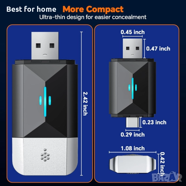 【УВОДИТЕЛИ И РЕШЕНИЯ – ИЗБЯГВАЙТЕ ИЗКУСТВАТА】Без приложения, без драйвери, без суетене. Просто включете този безжичен адаптер за Android Auto UK или безжичен адаптер за CarPlay в USB-A или USB-C порта, сдвоете телефона си и сте готови. Автоматично се свързва отново с устройството ви при всяко шофиране.