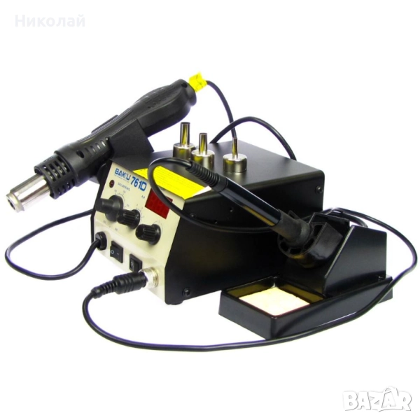 Комбинираната станция за запояване BAKU BK761D съчетава поялник и пистолет за горещ въздух в едно устройство, което я прави идеална за професионална употреба в сервизи, лаборатории и за хоби ремонти на електроника. Моделът осигурява стабилна работа, прецизен контрол на температурата и надеждност при запояване и демонтаж на електронни компоненти.