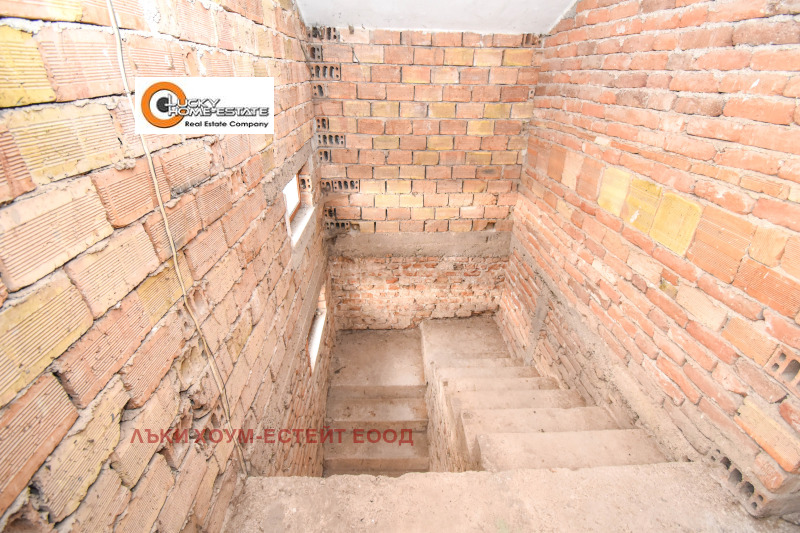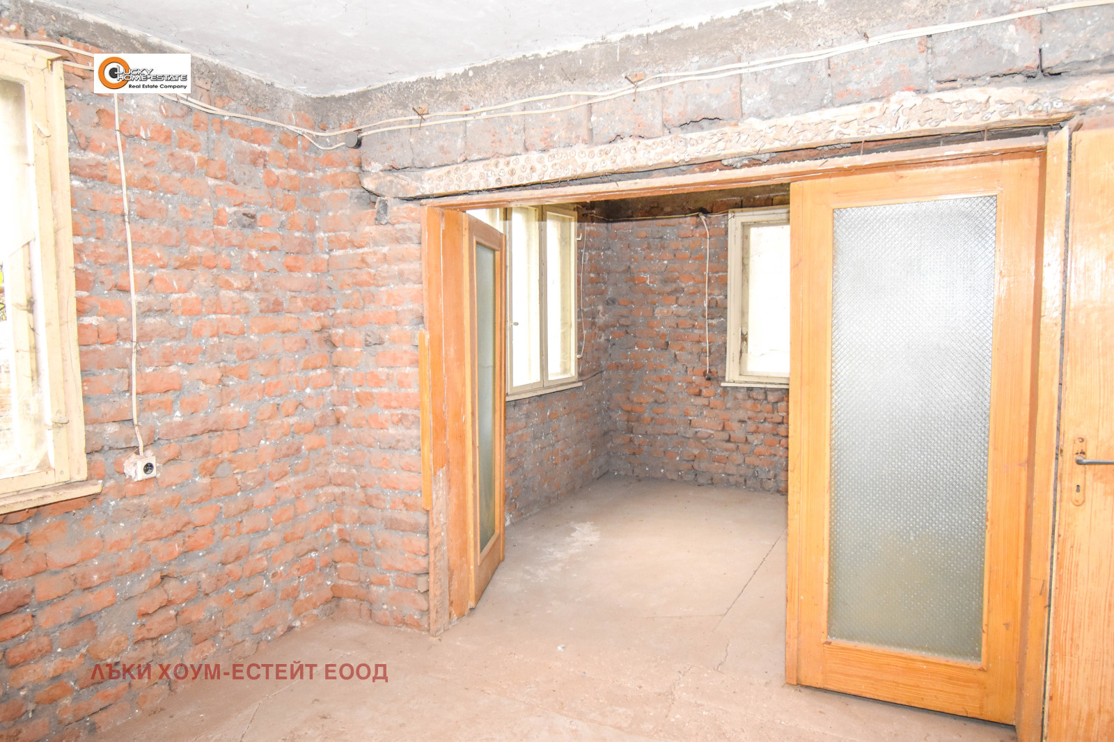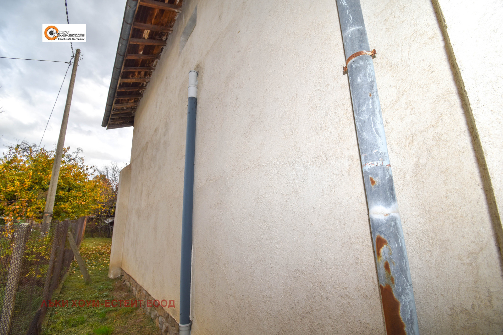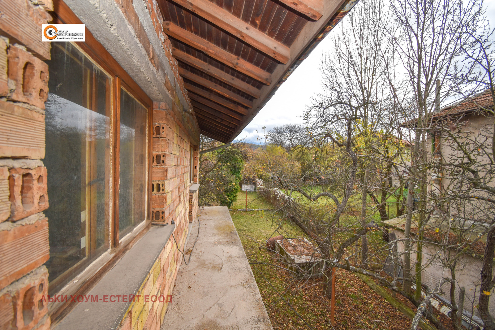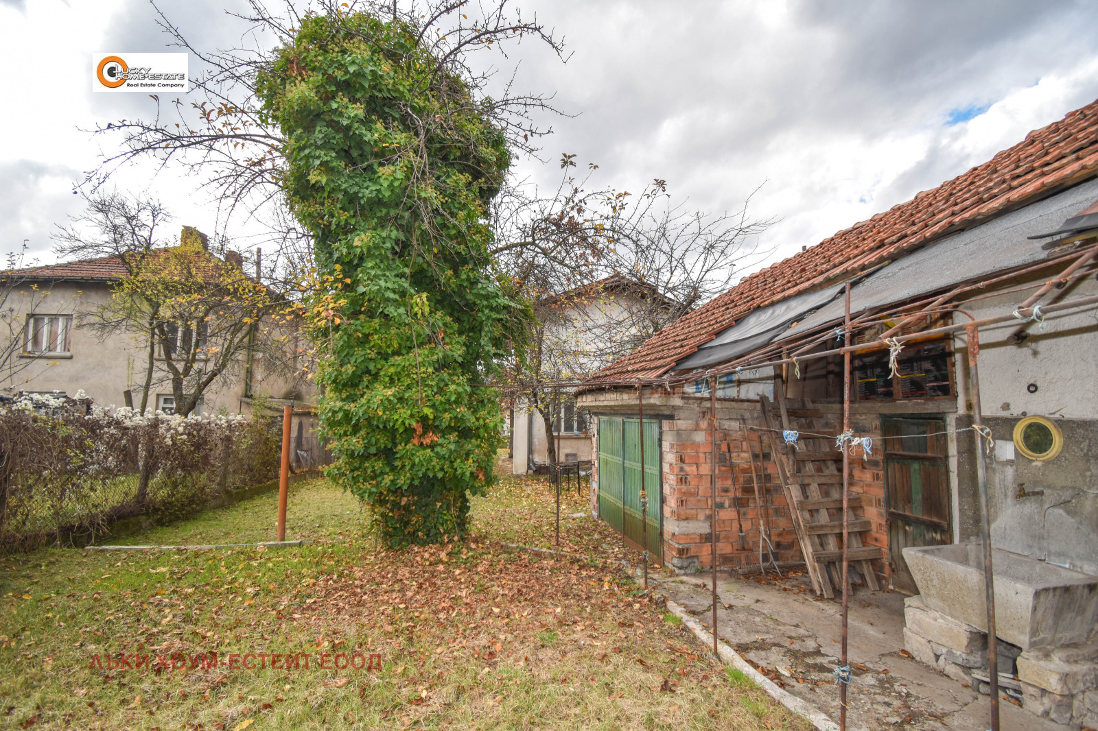 Масивна тухлена сграда 132 кв.м. с плоча, дървена дограма, здрав покрив, вътрешни стълби. Двор 708 кв.м., равен с прекрасна градина, овощни дръвчета и гараж 17 кв.м., кладенец, лятна кухня, също масивна сграда 34 кв.м. Имотът е с изрядни документи.