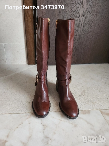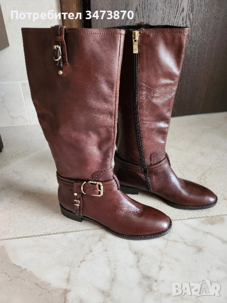 Красиви и елегантни дамски ботуши, естествена кожа. Цвят-кафяв/коняк, размер 37. Никога не са носени.