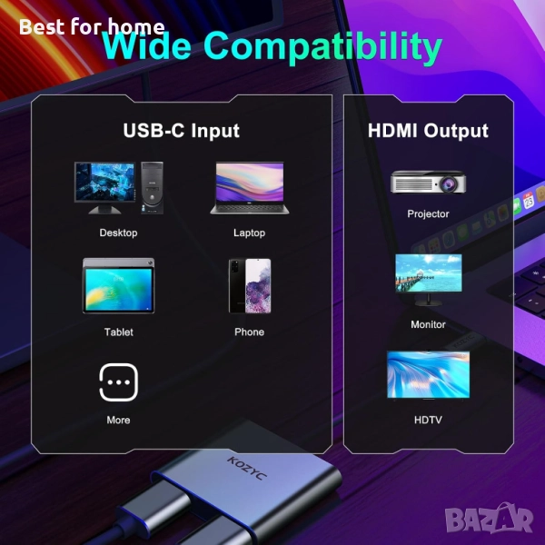 【Широка съвместимост】ЗАБЕЛЕЖКА: Уверете се, че вашият лаптоп поддържа DisplayPort Alternate Mode (DP Alt mode), USB4 и Thunderbolt 3/4. Този USB C HDMI адаптер е съвместим със системи Linux, Windows, macOS и Android. Съвместим е с Thunderbolt 3 и DP 1.2/1.4 alt mode. Съвместим е с MacBook, MacBook Air, MacBook Pro, Dell Inspiron, HP и други лаптопи/USB-C устройства с USB-C порт, които поддържат DP Alt mode.