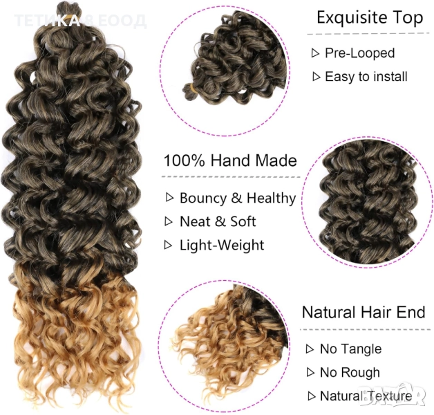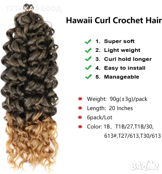 Специални характеристики: модел “Hawaii Ocean Wave”, монтаж с кука (crochet braid)