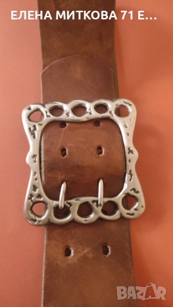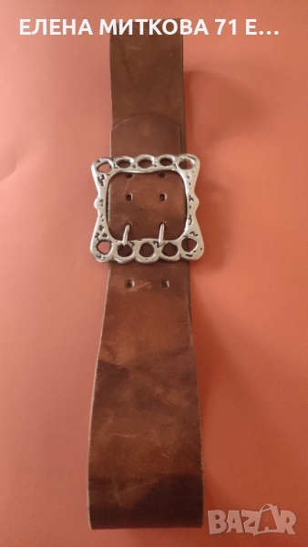 2/Колан с голяма метална тока 10 х 9 см , ширина 6.5 см , дължина с токата 106 см-изработен от дебела и здрава кожа