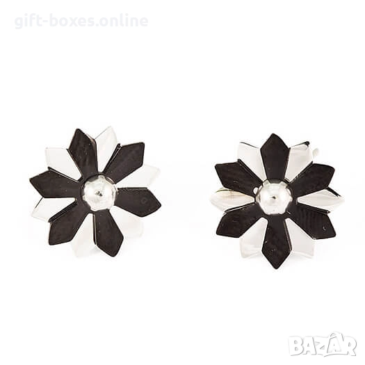 Нежни стоманени обеци изработени от полирана стомана цвят:SILVERGOLD и елегантно инкрустирани черни детайли