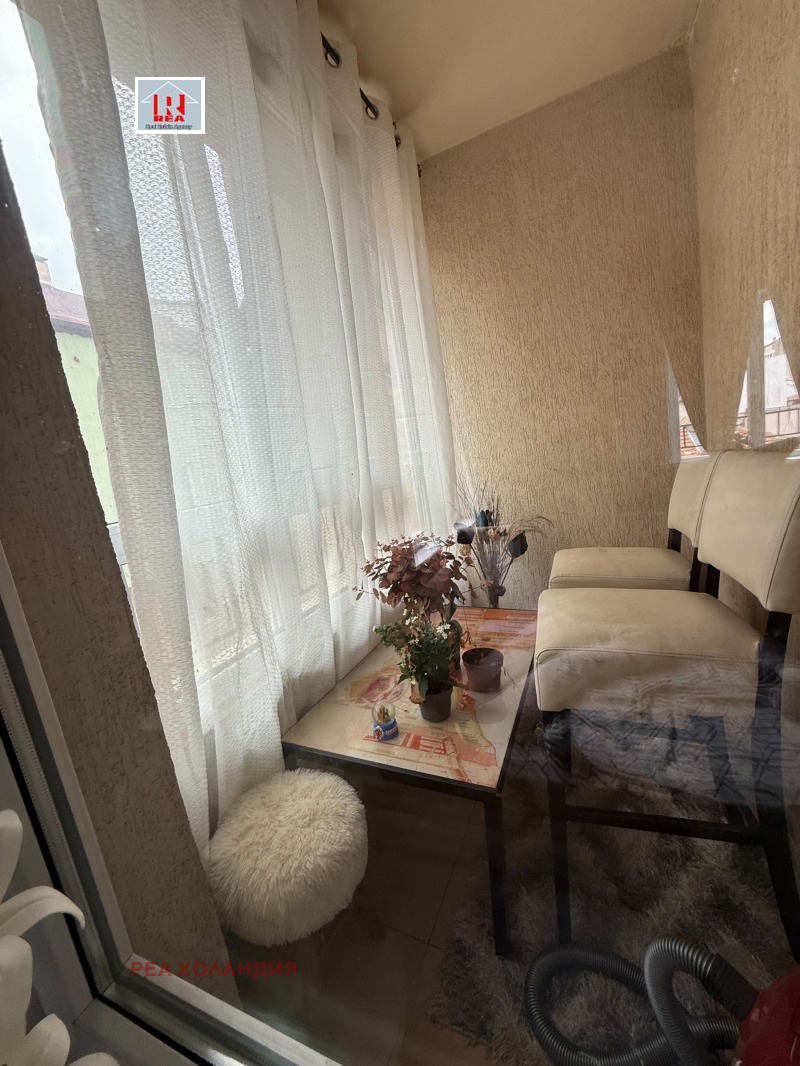 Жилището е с площ от 96кв.м. и има следното разпределение: входно антре, голям дневен тракт с тераса, спалня с тераса, втора спалня с тераса, баня с тоалет. Разположен е на 2-ри непоследен жилищен етаж без асасньор. Общите части са добре поддържани. Предлага се обзаведен и оборудван както е на снимките. Нуждае се от козметичен ремонт и освежаване. В района има множество магазини, пазар, училища, детски градини, заведения, спирки на градски транспорт, а само на няколко минути пеш са центъра, катедрален храм Свето успение богородично и пешеходната зона на града. Агенция Реа разполага с изключителнии права за продажба на този имот! За повече информация и огледи, моля да се свържете с нас.