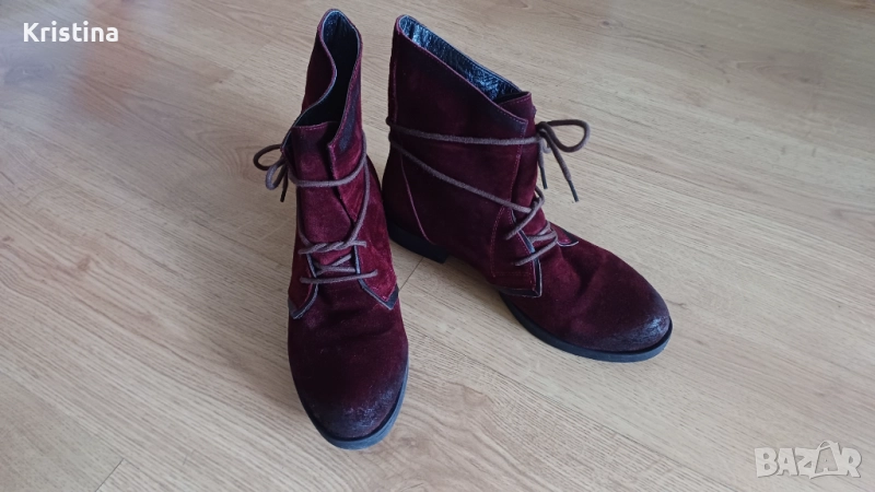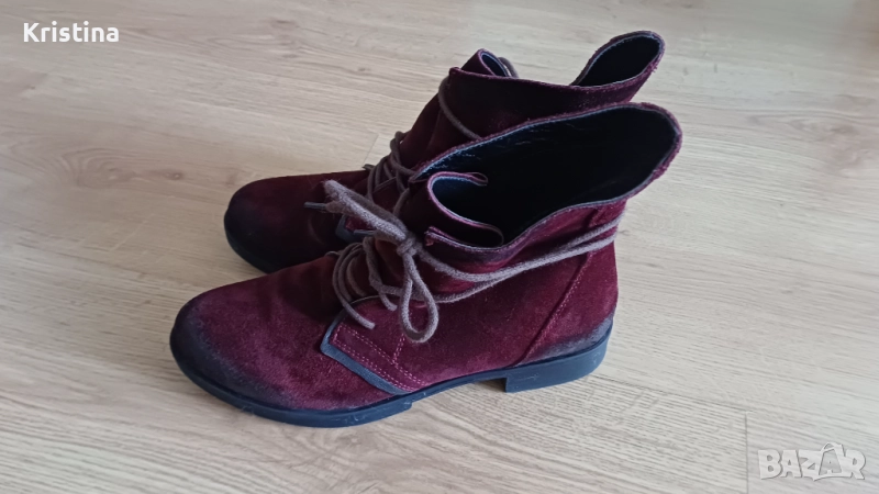 Велурени боти във винено червен цвят с ефект, носени веднъж за кратко, номер 40 - 70 лева.