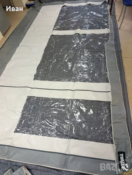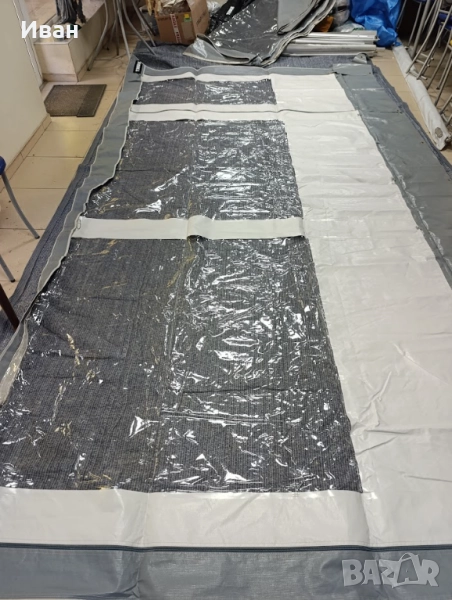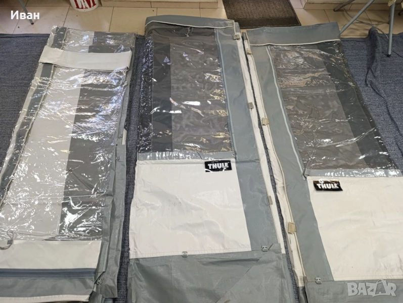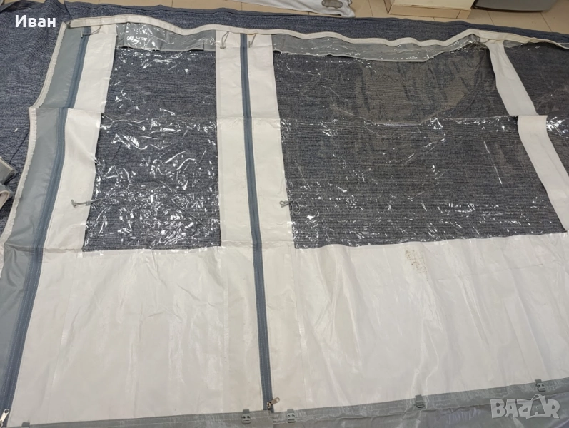 За тента с дължина 450см (лицев панел) С големи комарници от двете страни. Включени са всички монтажни греди. С пола против течения под кемпера. С комплект за приковаване. С инструкции за монтаж.