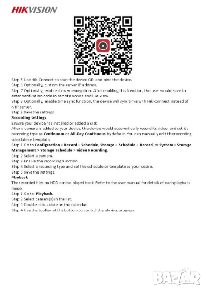 Мрежов протоколи: TCP/IP, PPPoE, DHCP, Hik-Connect, DNS, DDNS, NTP, SADP, NFS, iSCSI, UPnP™, HTTPS, ONVIF