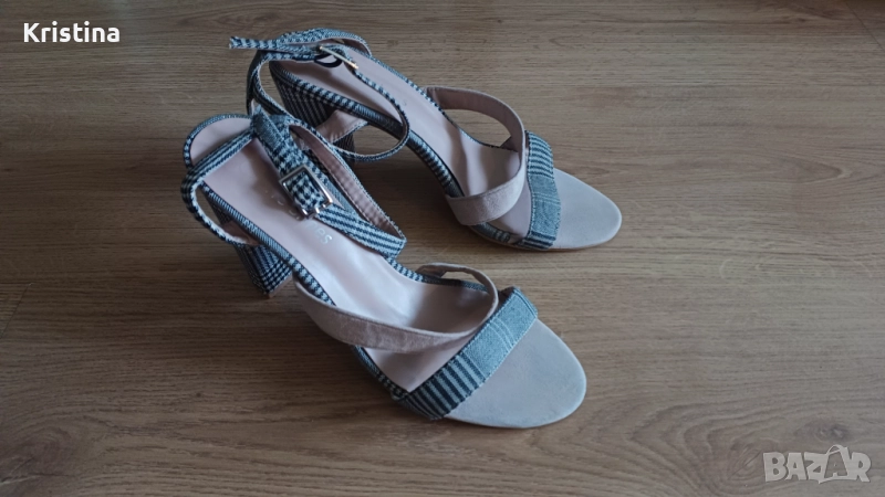 Носени веднъж, токчета от плат в черно-бяло и розово, номер 38,5 - 20 лева