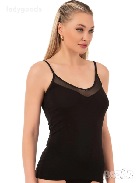 Дамски потник с тюл,приляга добре на тялото ви, не стяга кожата ви и не причинява дискомфорт. Не ограничава мобилността ви. Не се втвърдява и не променя цвета си след пране. Гъвкав, мек и издръжлив,има дълъг експлоатационен живот.Поддържа кожата ви суха и позволява на въздуха да преминава.