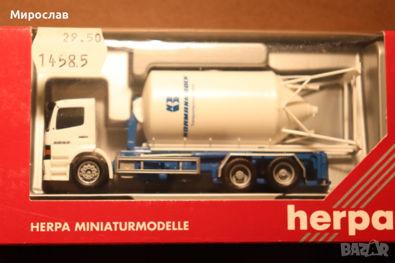 HERPA H0 1/87 MERCEDES ATEGO ЦИМЕНТОВОЗ КАМИОН МОДЕЛ → Обява 52335397