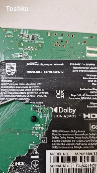 Свалени от работещ телевизор със спукана матрица ТВ PHILIPS 55PUS7506/12