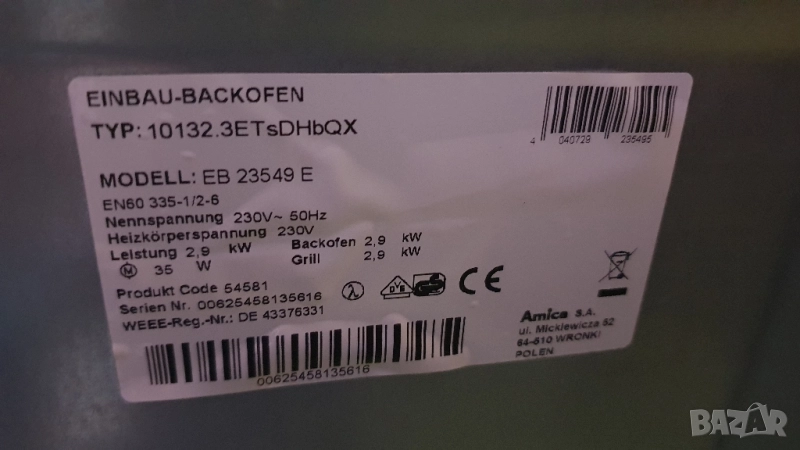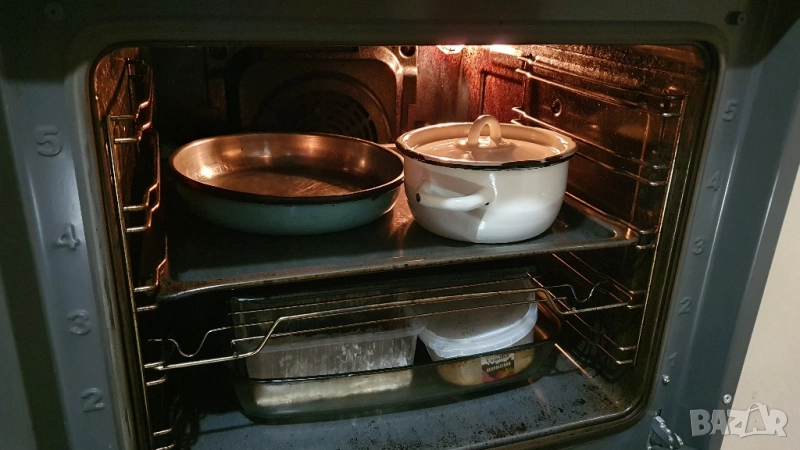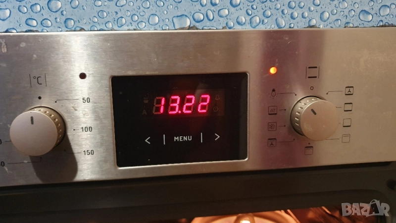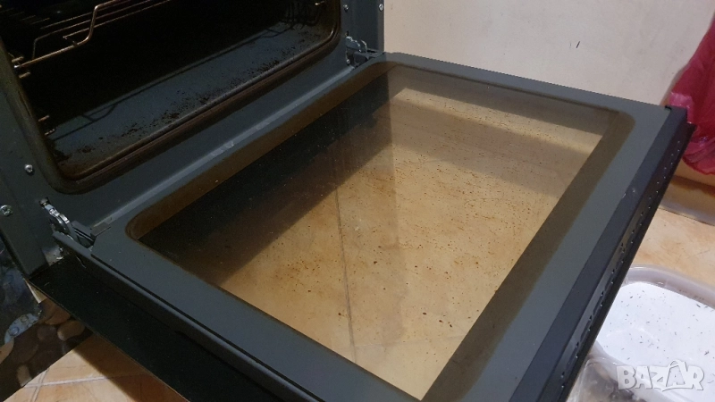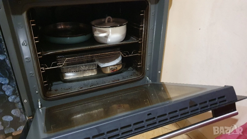 фурна за вграждане, работи отлично! Пече яко, 😁 има доста програми от дисплея, горе е с два реотана! единия играе роля за фурната втория се води нещо като скара, часовник който се сверява! Задължително!! Както и при спиране на тока, защото занулява часовника на - 12:00ч. Тъч бутони и пуш бутони, които се вкарват навътре при натискане. Има си два вентилатора! Един за фурната и втори в самата система на цирфеблата, за да охлажда електрониката. След приключване на печене, може да се остави да охлажда. Фурната няма ръжди, няма дупки или пробиви! Единствено се иска почистване от женска ръка, 😁 понеже нямам време да я почистя. Виждате външно състояние: Перфектно!