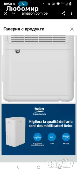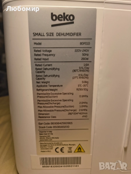 BEKO BDPO 010, 10L, R290 влагоабсорбатор, тих, 12-часов таймер, сензорен контролен панел, минимални