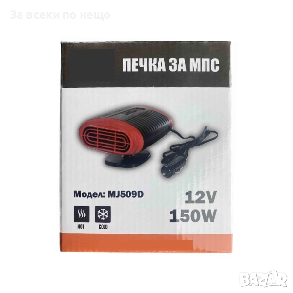 Автомобилна печка MJ509D – 12V, 150W, HEAT/FAN, за размразяване на предно стъкло и отопление. Въртяща се стойка, дълъг кабел 1.5 м.