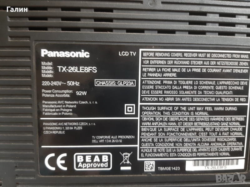 Продавам платките (мейнборд и захранване) от LCD PANASONIC TX26LE8FSна, снимка 1 - Части и Платки - 52336229 Продавам платките (мейнборд и захранване) от LCD PANASONIC TX26LE8FSна, снимка 2 - Части и Платки - 52336229 Продавам платките (мейнборд и захранване) от LCD PANASONIC TX26LE8FSна, снимка 3 - Части и Платки - 52336229 Продавам платките (мейнборд и захранване) от LCD PANASONIC TX26LE8FSна, снимка 4 - Части и Платки - 52336229 1/4
