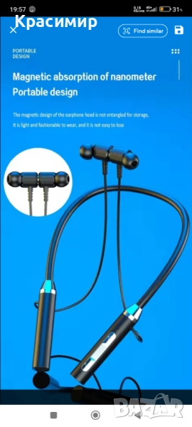 Безжични слушалки с лента за врат. Магнитни спортни водоустойчиви. TWS слушалки, с Blutooth. Много дълъх живот на батерията. Предназначени за спорт. Имам няколко броя.