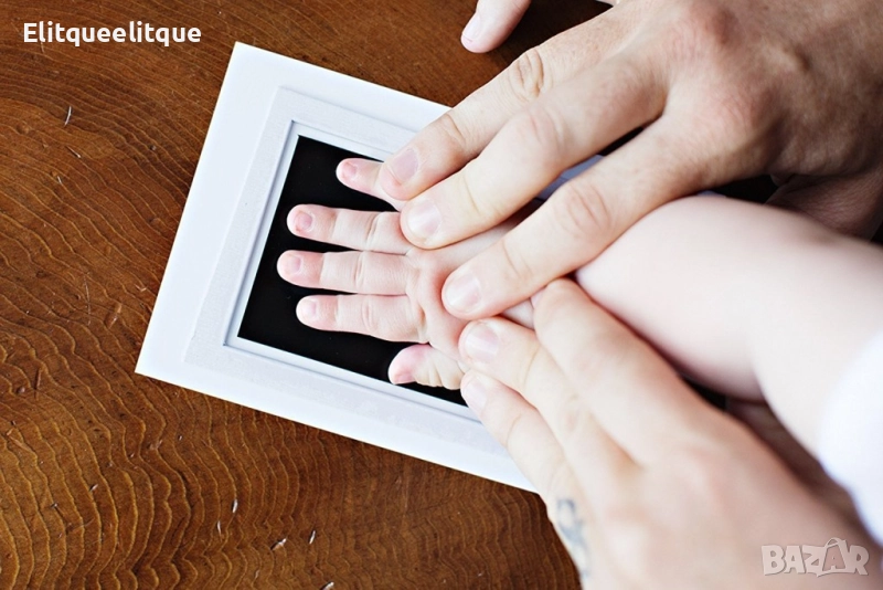 Безопасен и напълно нетоксичен комплект за правене на отпечатъци на бебешки крачета или ръчички. Ръчно щамповани и направени така, че бебето да не докосва мастилото. Страхотен подарък за родители. Може да се използва и за отпечатъци на лапите на домашните любимци.