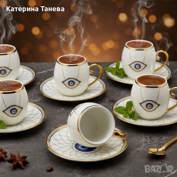 Луксозен сервиз за кафе (6 чаши + 6 чинийки):