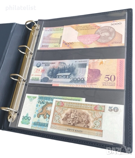 Капацитет до 60 листа за банкноти, пощенски картички и марки и до 20 листа за монети в картончета.