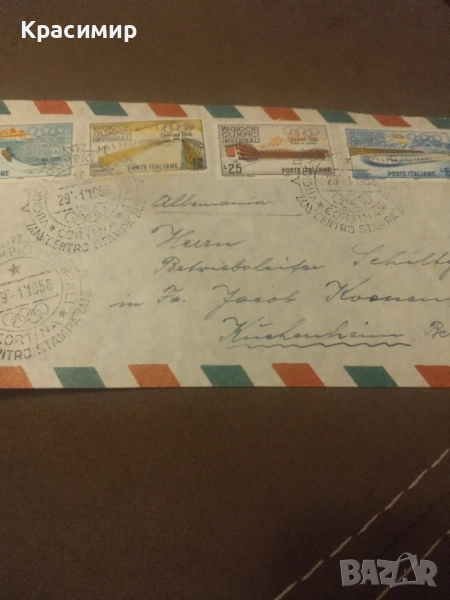Пощенски плик Кортина д'Ампенцо 1956 г. → Обява 52337635