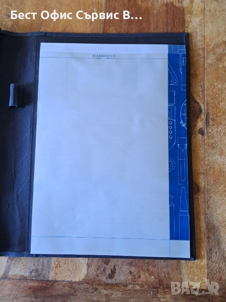Продавам папка луксозна за документи кожена синя Марксман Marksman Размер А4. Има 1 място за химикалки. Чисто нови. От частна колекция. За ценители.
