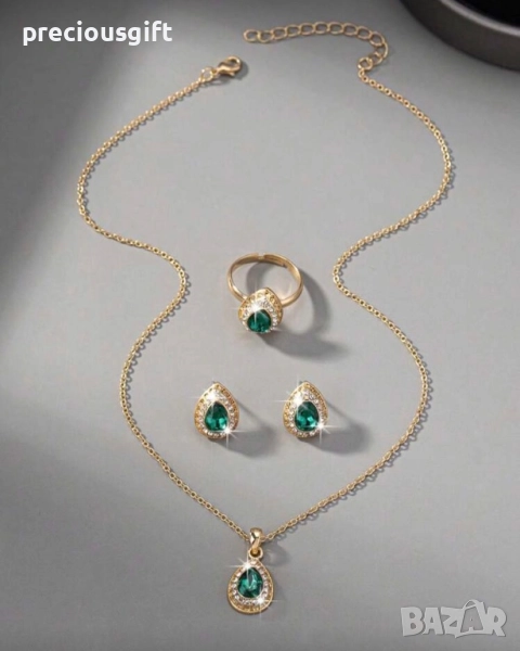Комплект бижута от 3 части - колие, пръстен и обеци → Обява 52338673