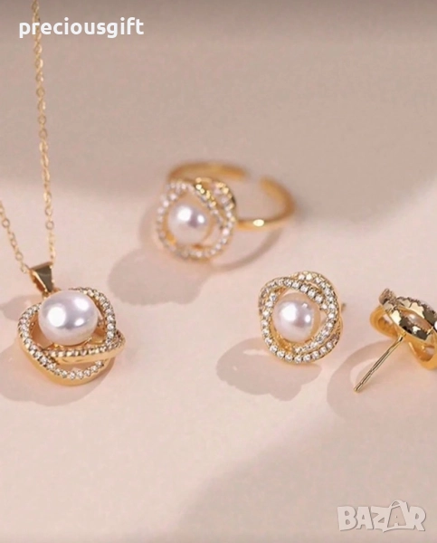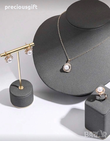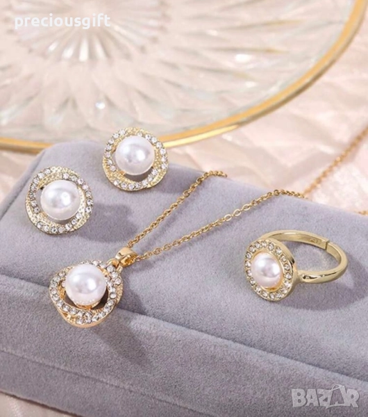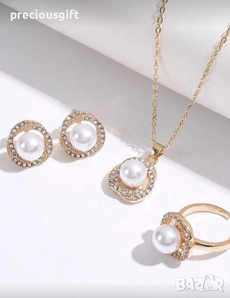 Комплект бижута от 3 части - колие, обеци и пръстен → Обява 52338688