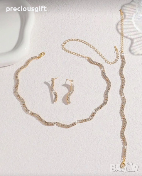 Комплект бижута от 3 части - колие, обеци и гривна → Обява 52338690