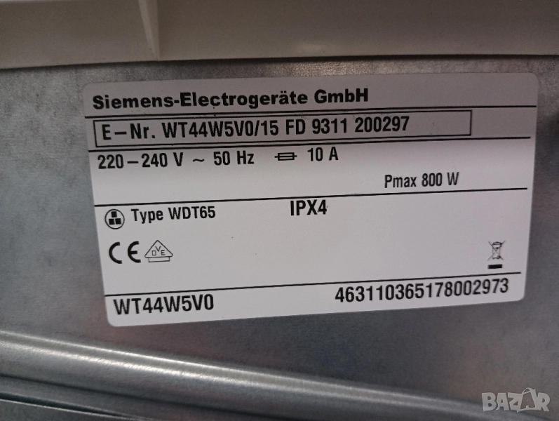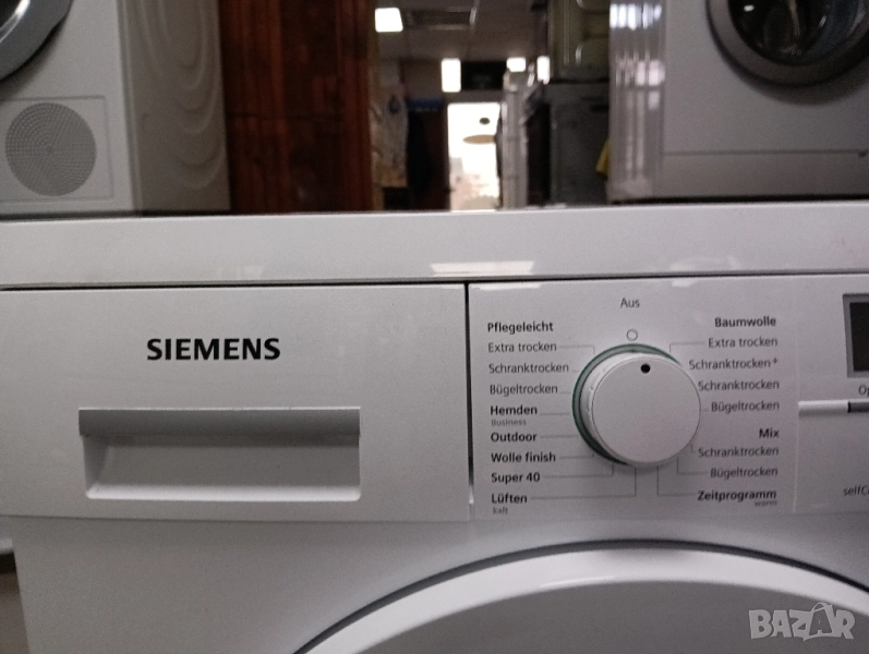 Много висок клас сушилна с термопомпа Сименс, много икономична с консумация само 800 wata, отложен старт, само почистващ се кондензатор, лед дисплей, изцяло тъчскрийн управление на бутоните, функция ГЛАДЕНЕ при която дрехите излизат без гънки от сушилнята!