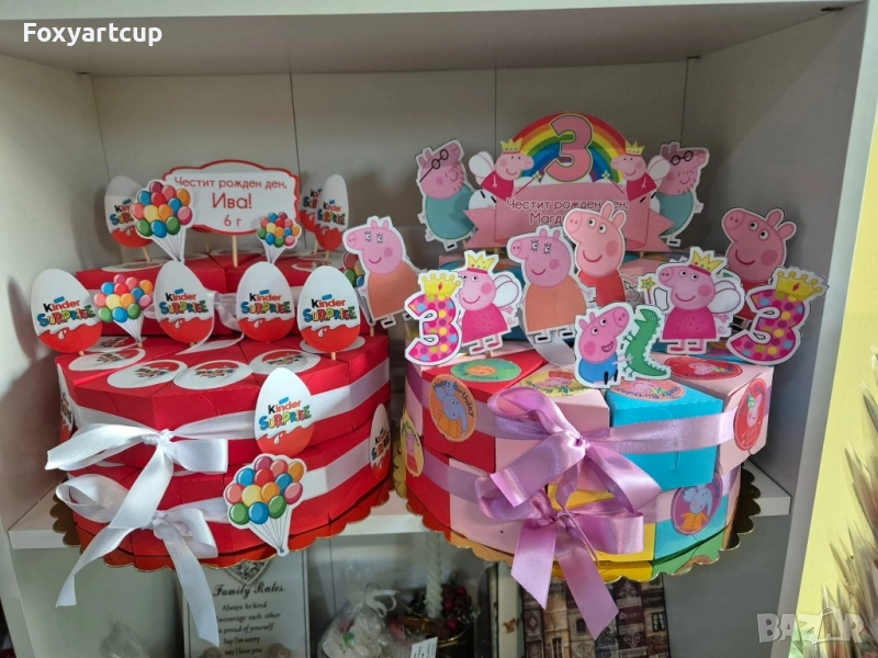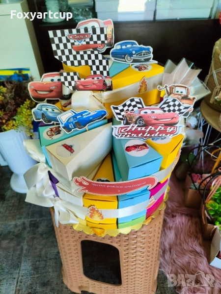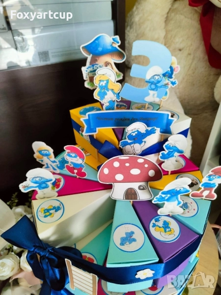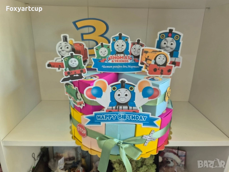 Картонената торта се изработва по индивидуална поръчка с тема и брой парчета по избор.