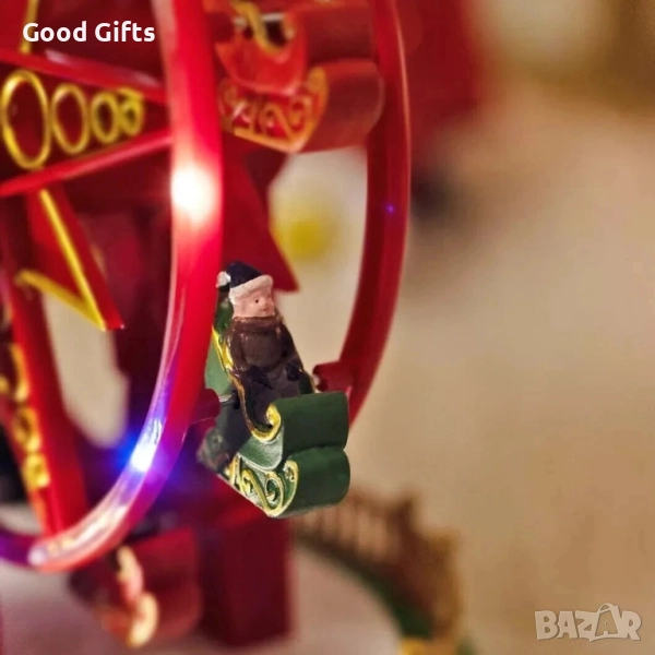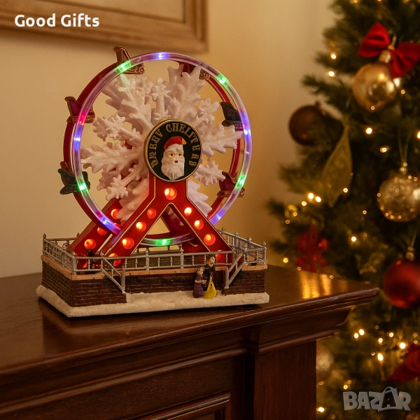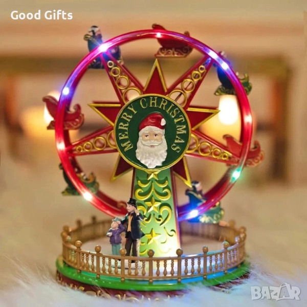 Внесете празнична магия и живот у дома с това въртящо се коледно Виенско колело с музика и LED светлини. Едно включване е достатъчно, за да превърнете помещението в блестящ коледен спектакъл – колелото се върти плавно, свири весели мелодии и свети в множество цветове, създавайки атмосфера на зимна приказка.