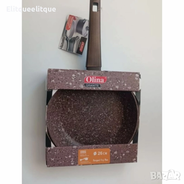 Тиганът Olina е отличен избор за всеки, който иска да приготвя вкусни и здравословни ястия с лекота! Марка: Olina; Материал: Алуминий с гранитно покритие; Размери: 22 см, 24 см, 26 см, 28 см; Цвят: Кафяв гранит; Подходящ за: Газови, електрически, халогенни и стъклокерамични котлони.