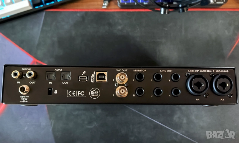 Закупена директно от производителя през декември 2020 г., в много добро състояние и визуално и работно (има малко и трудно забележими следи от употреба), използвана основно в домашното ми студио и съвсем малко за записи на други места (репетиционни или други студия).