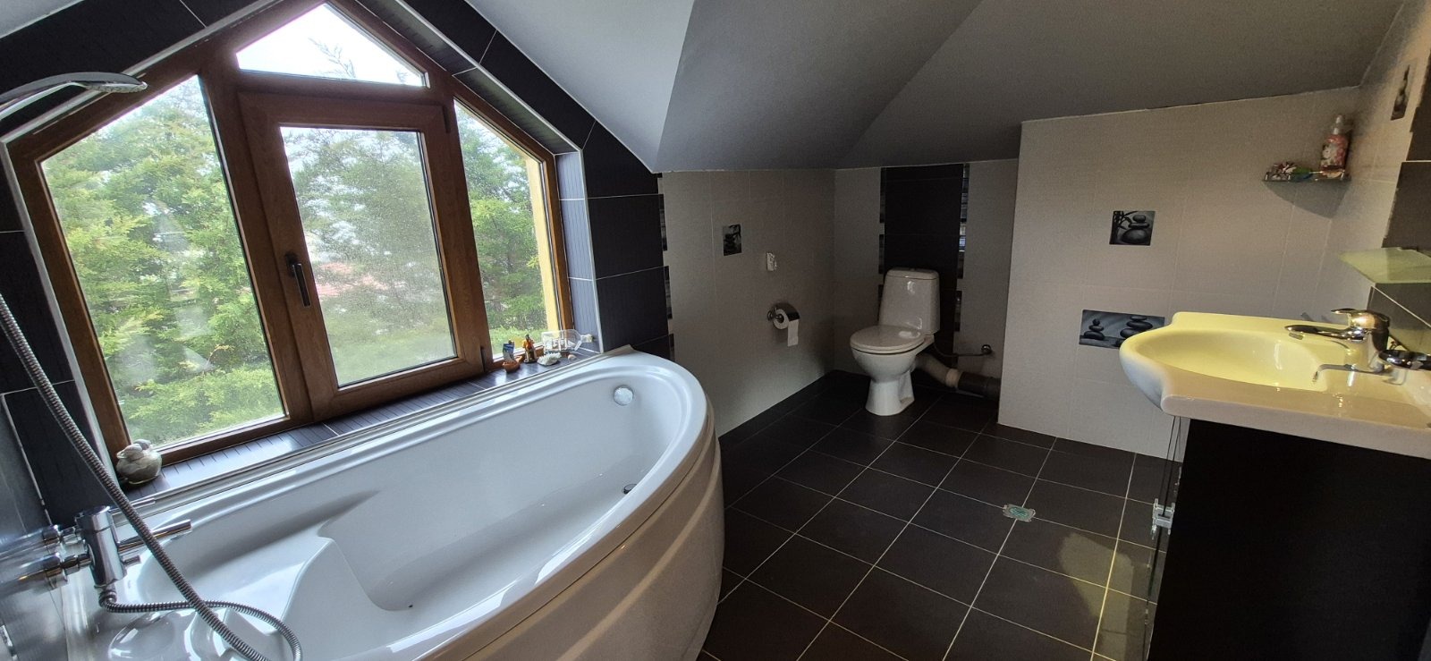 Къщата е напълно обзаведена и оборудвана с всичко необходимо за Вашето пълноценно и приятно обитаване. Отоплението се осъществяа с висок клас климатици и конвекторни радиатори.