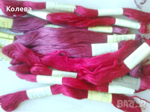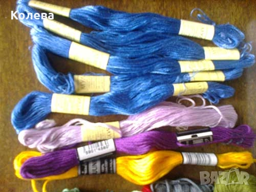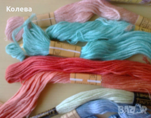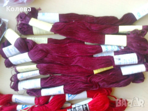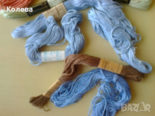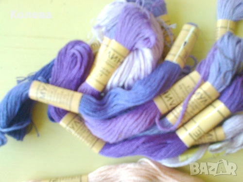 288. Конци за бродерия Памучни конци за бродерия /гоблени и др./ От времето на соца. Мерсеризирани. МУЛИНЕ 20 ТЕХ х 2 х 6. Производство на завод „България” – Казанлък. Първо качество, трайни цветове, 8 метра в една бройка. Различни цветове и нюанси на основния цвят, 302 броя общо.