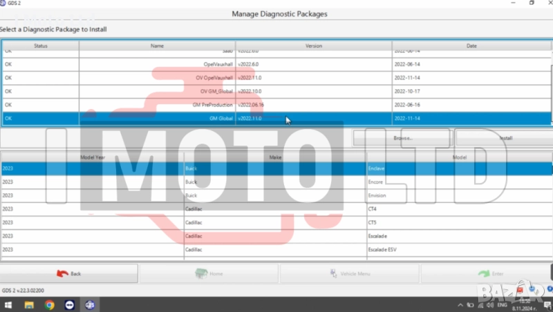 Върху лаптопа са инсталирани и конфигурирани J2534 версии на най-популярните дилърски приложения, готови за работа с Scanmatik 2 PRO: