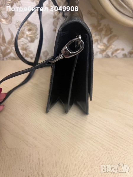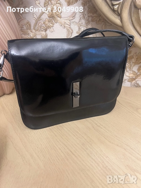 Естествен кожа-лак чанта.Сърахотна чанта с дълга дръжка и 3 прегради.Много запазена с леки следи от употреба .