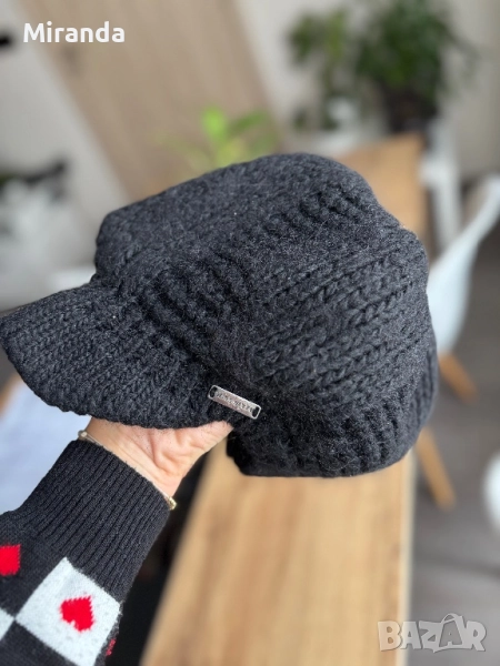 Плетена шапка на Мис Сиксти с метално лого. Няма забележки, носена е малко, много стилна и удобна. Имам много и тази ми стои така.