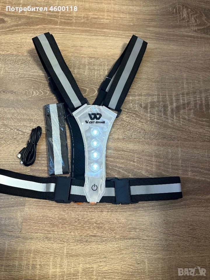 Светлоотразителна жилетка за колоездач, бегач , снимка 1 - Спортна екипировка - 52341441 Светлоотразителна жилетка за колоездач, бегач , снимка 2 - Спортна екипировка - 52341441 1/2