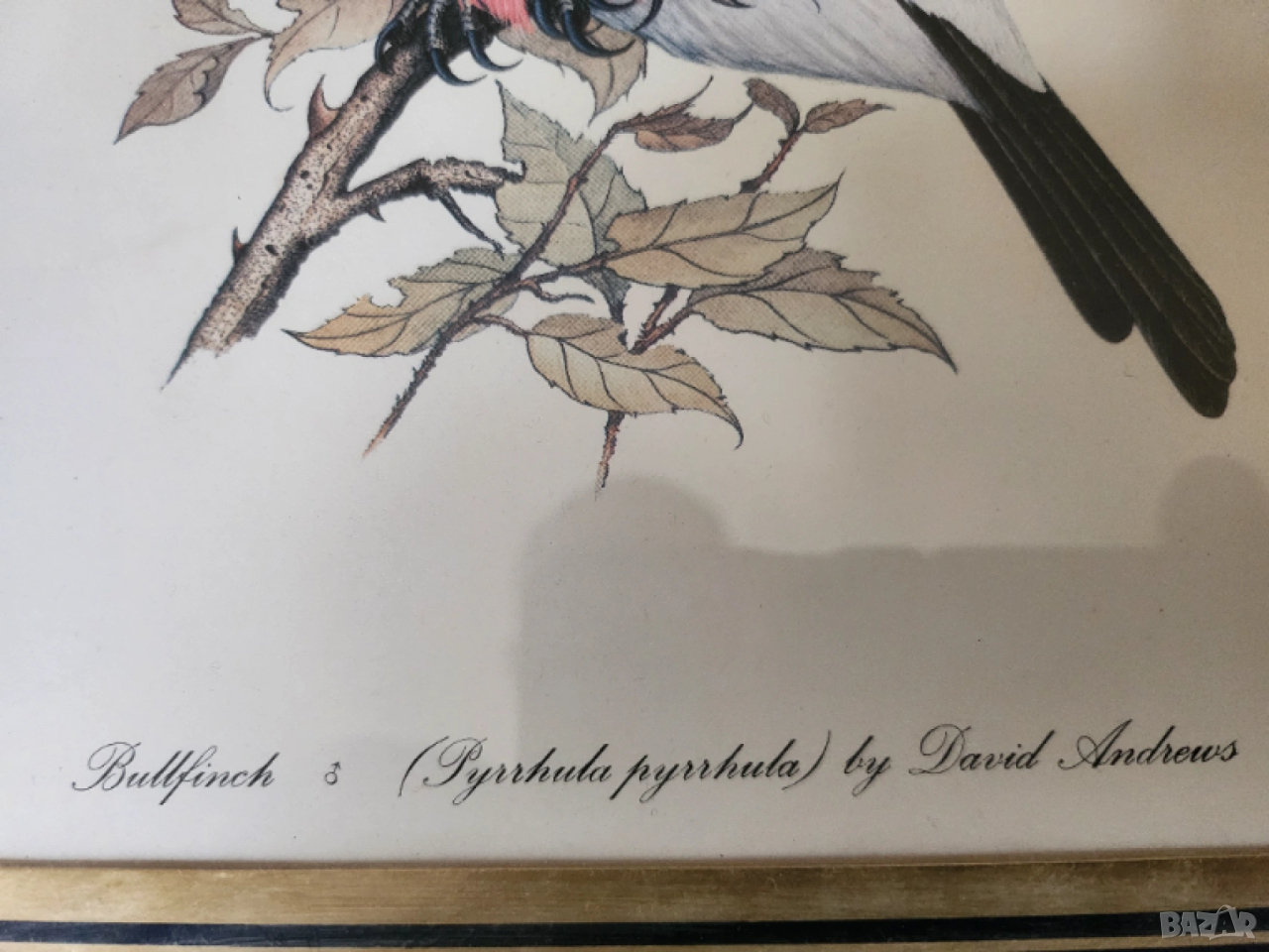 3) рамкирана ( в дървена рамка) рисунка на червенушка ( Pyrrhula pyrrhula).