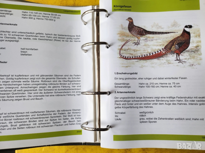 1) рядко издание на Германската федерация на любителите/развъждащите чистокръвни декоративни птици ( BDRG ) с над 300 вида описани, с критерии за оценяване на признатите породи.