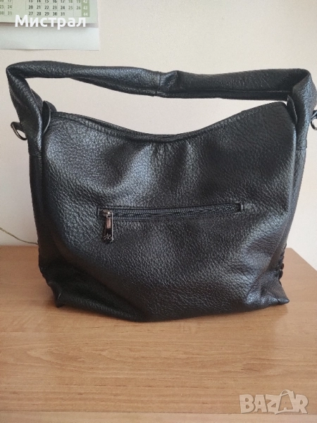 Чантата е перфектна, ползвана за кратко ( липсва дългата дръжка). Чантата е с размери 38 см ширина/ 30 см. височина, дъното е 32/15 см. Еко кожа.