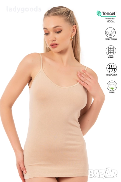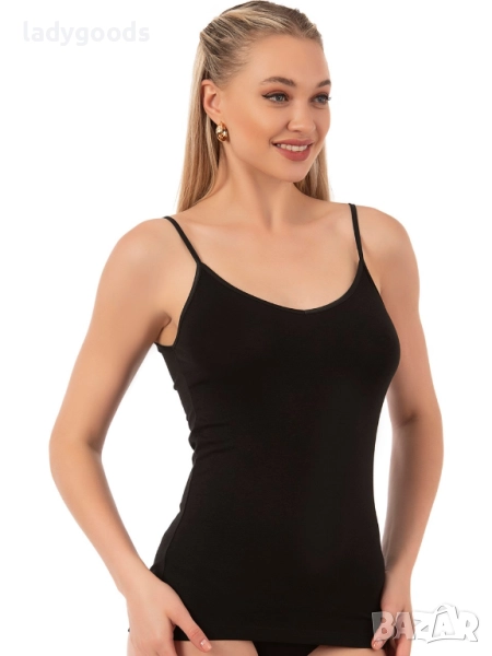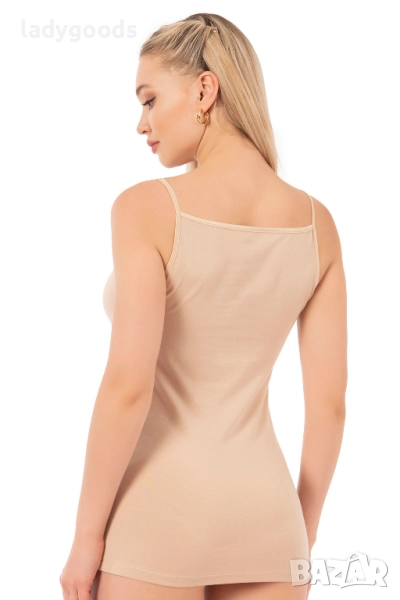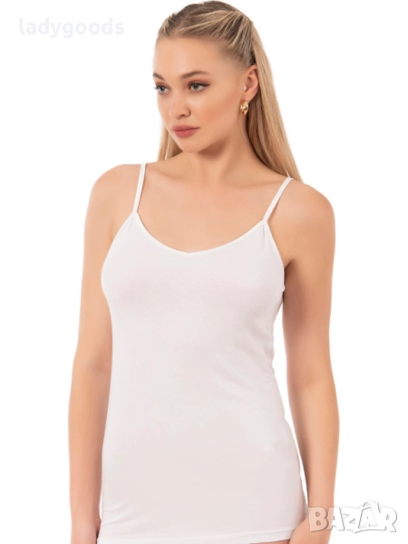 Този стилен модел,дамски потник,с тънки презрамки,може да се носи с различни тоалети или самостоятелно.Приляга гладко на тялото ви, не стяга кожата ви и не причинява дискомфорт. Не ограничава мобилността ви. Не се втвърдява и не променя цвета си след пране.